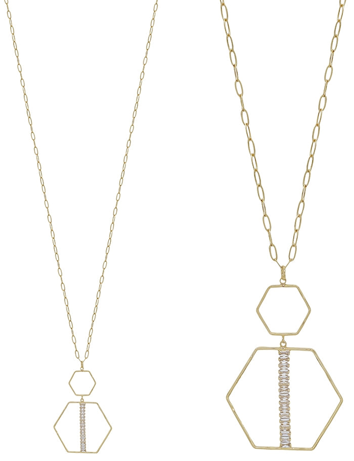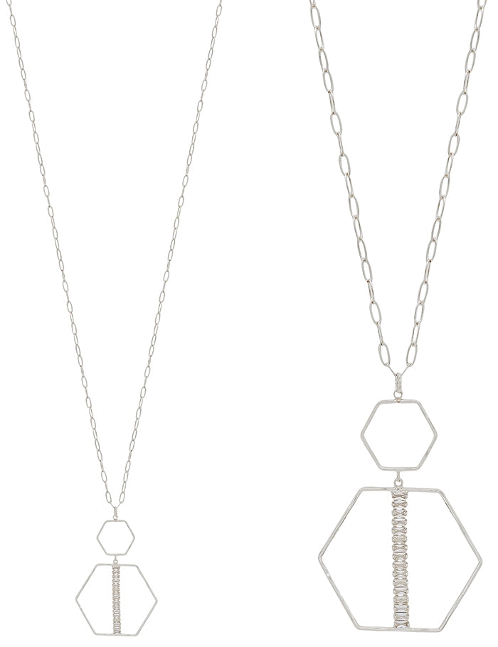 - Double Layered Rhinestone Hexagon Pendant
