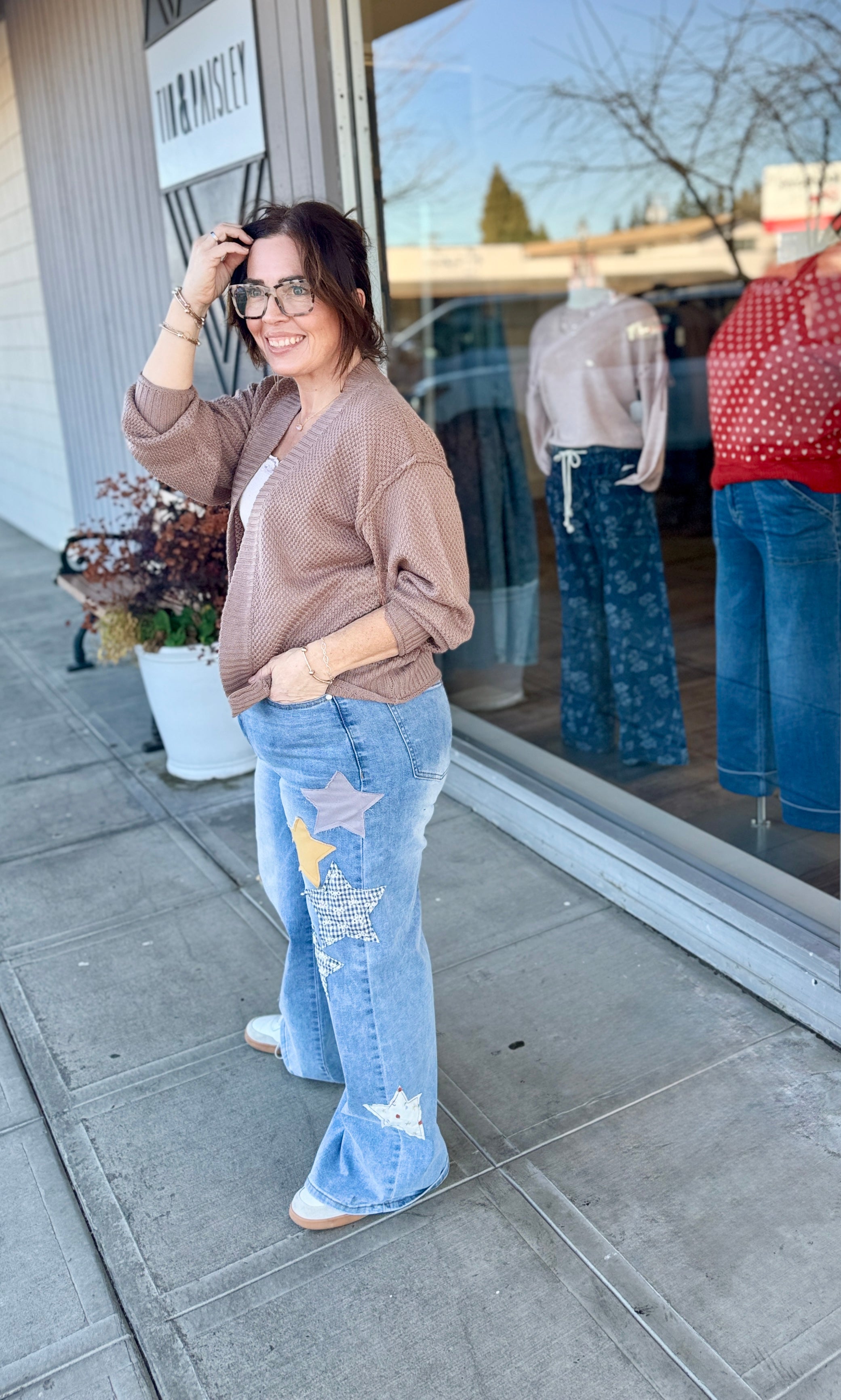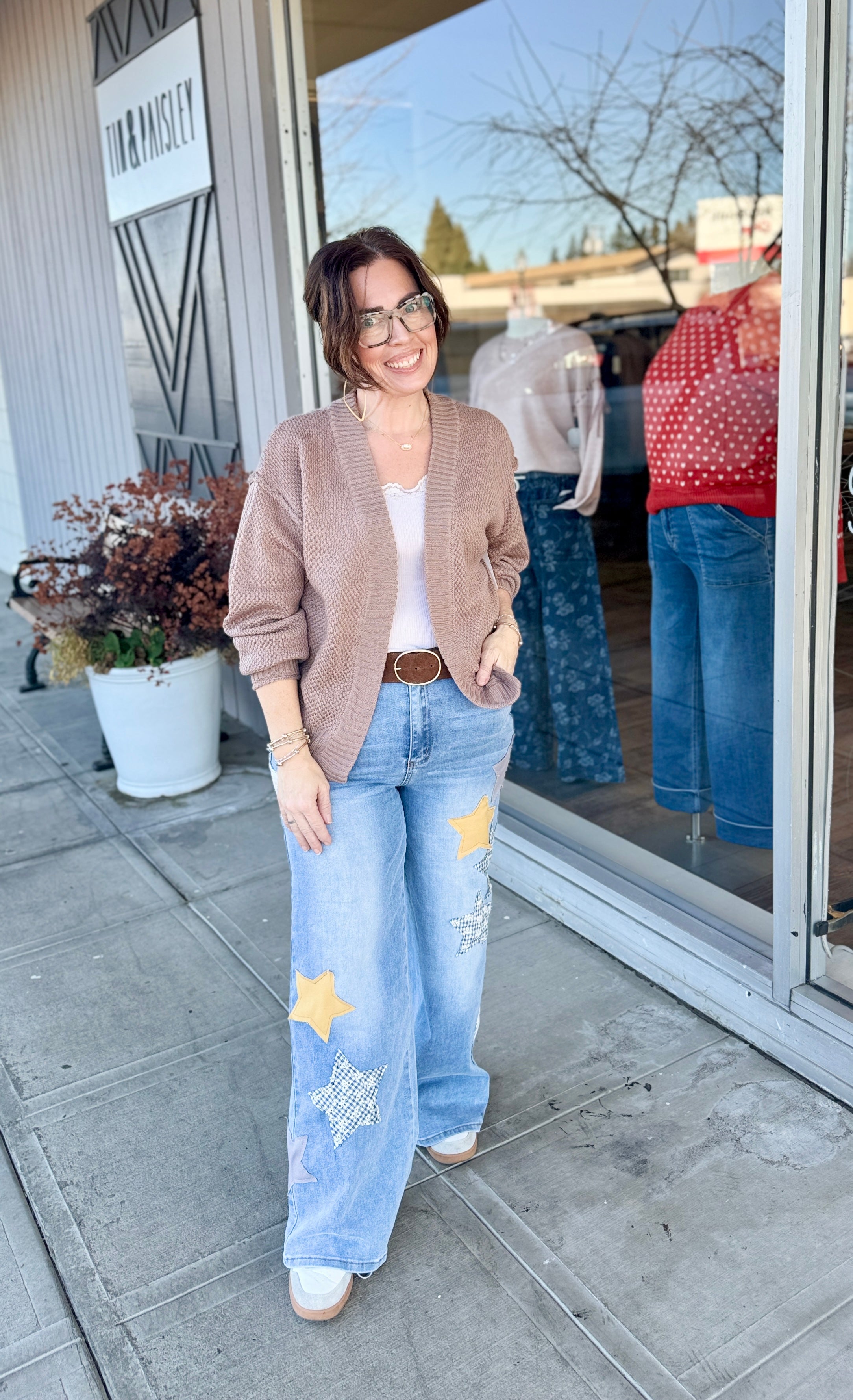 Add a playful touch to your everyday denim with these Stella Star Patch Jeans! With colorful star details and a relaxed, cropped fit, they’re perfect for casual outings or weekend adventures—you’ll love how fun and effortless they feel.
