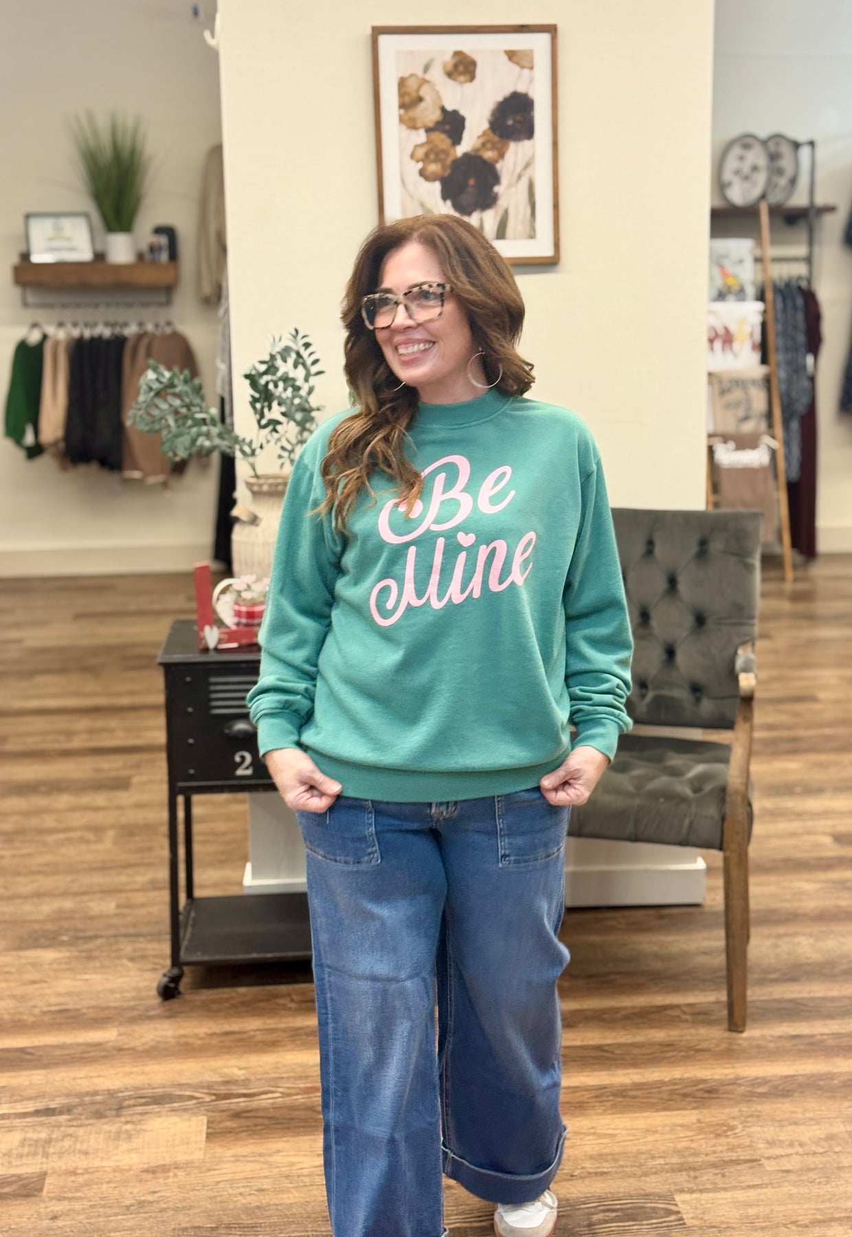 Rock that retro vibe with our Be Mine Sweatshirt—a cozy graphic tee that nails the vintage aesthetic without sacrificing comfort. We've used cutting-edge enzyme dyeing and mineral washing techniques to deliver that perfectly worn-in softness you're craving. It's nostalgia meets modern comfort in one irresistible piece.