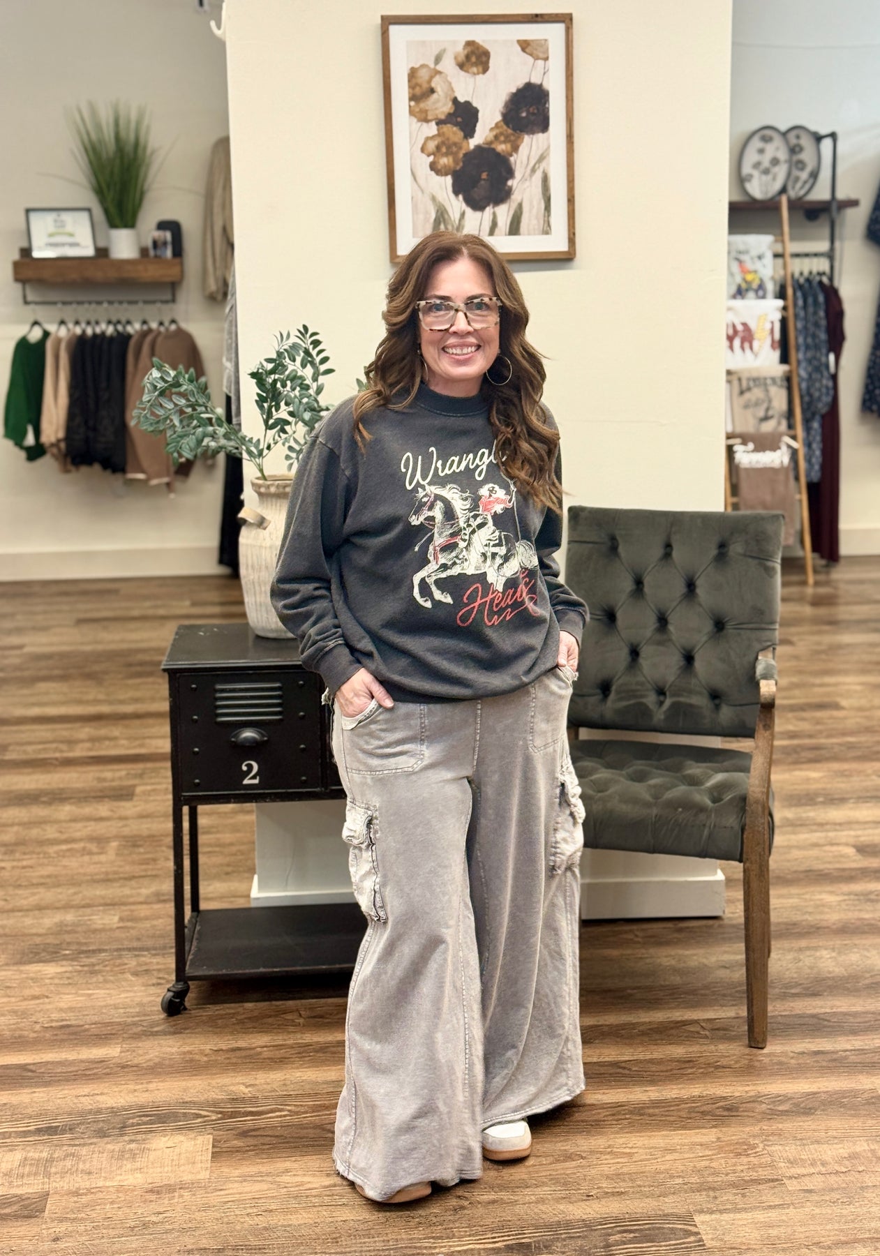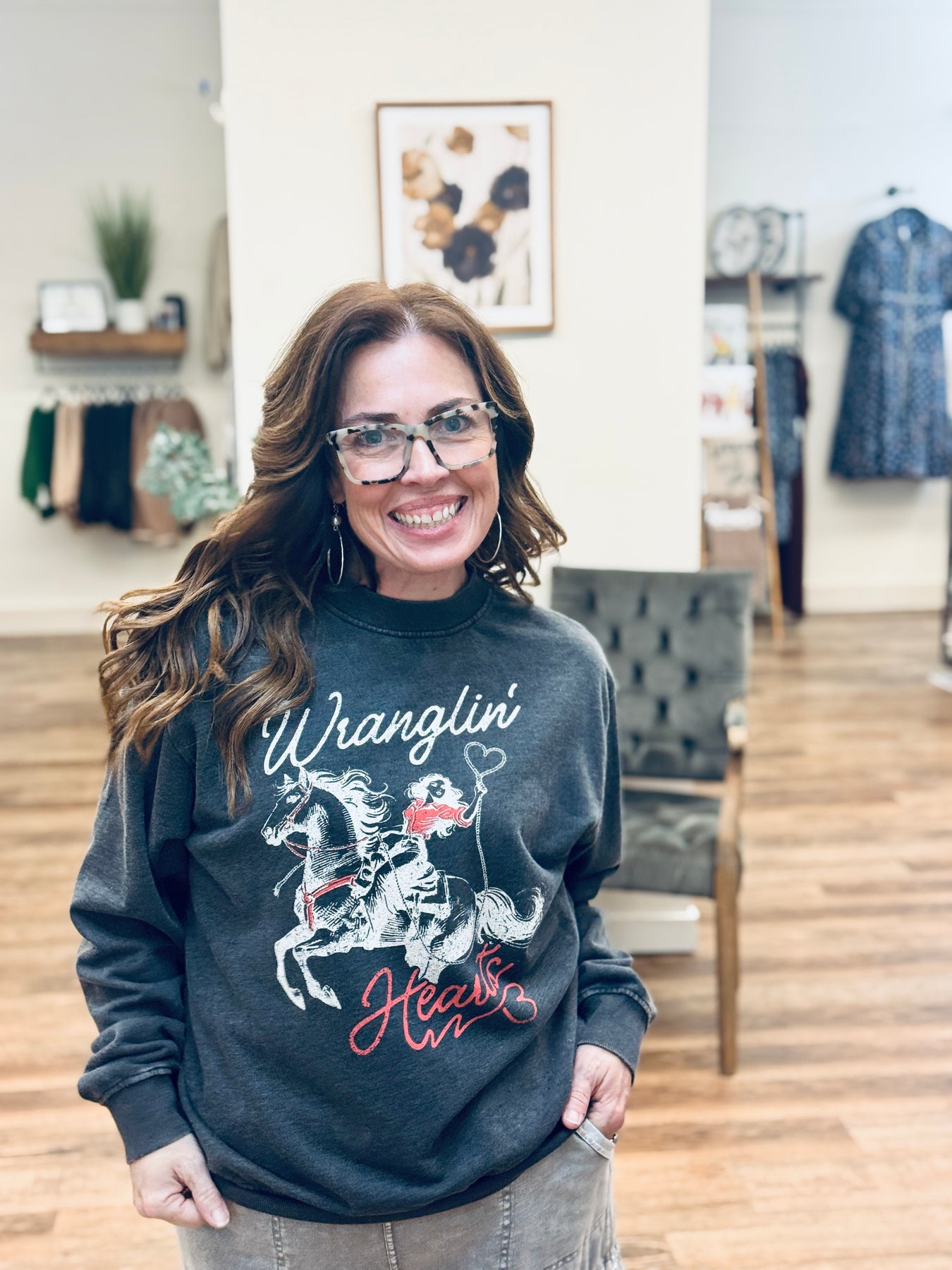 Saddle up in our Wranglin Hearts Sweatshirt—where Western charm meets laid-back comfort. This graphic sweatshirt captures that coveted vintage aesthetic with a buttery-soft touch thanks to our signature enzyme dyeing and mineral wash treatment. Perfect for anyone who loves that perfectly broken-in feel without the wait.