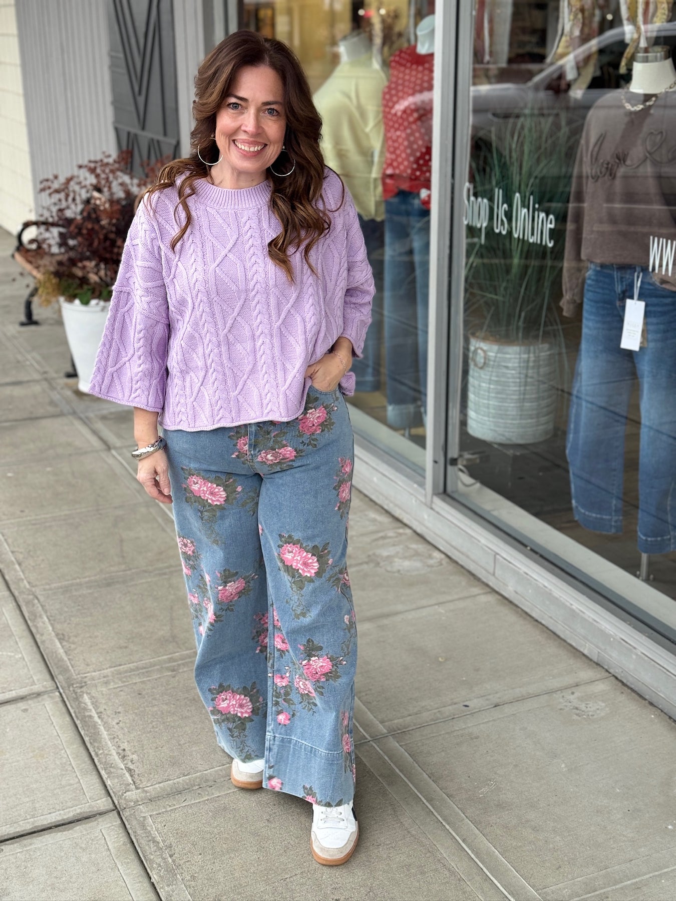 Model Angela is wearing a size large. She is usually a size small/medium in top and a size 9-11 in pants. She is 5’3”for reference.