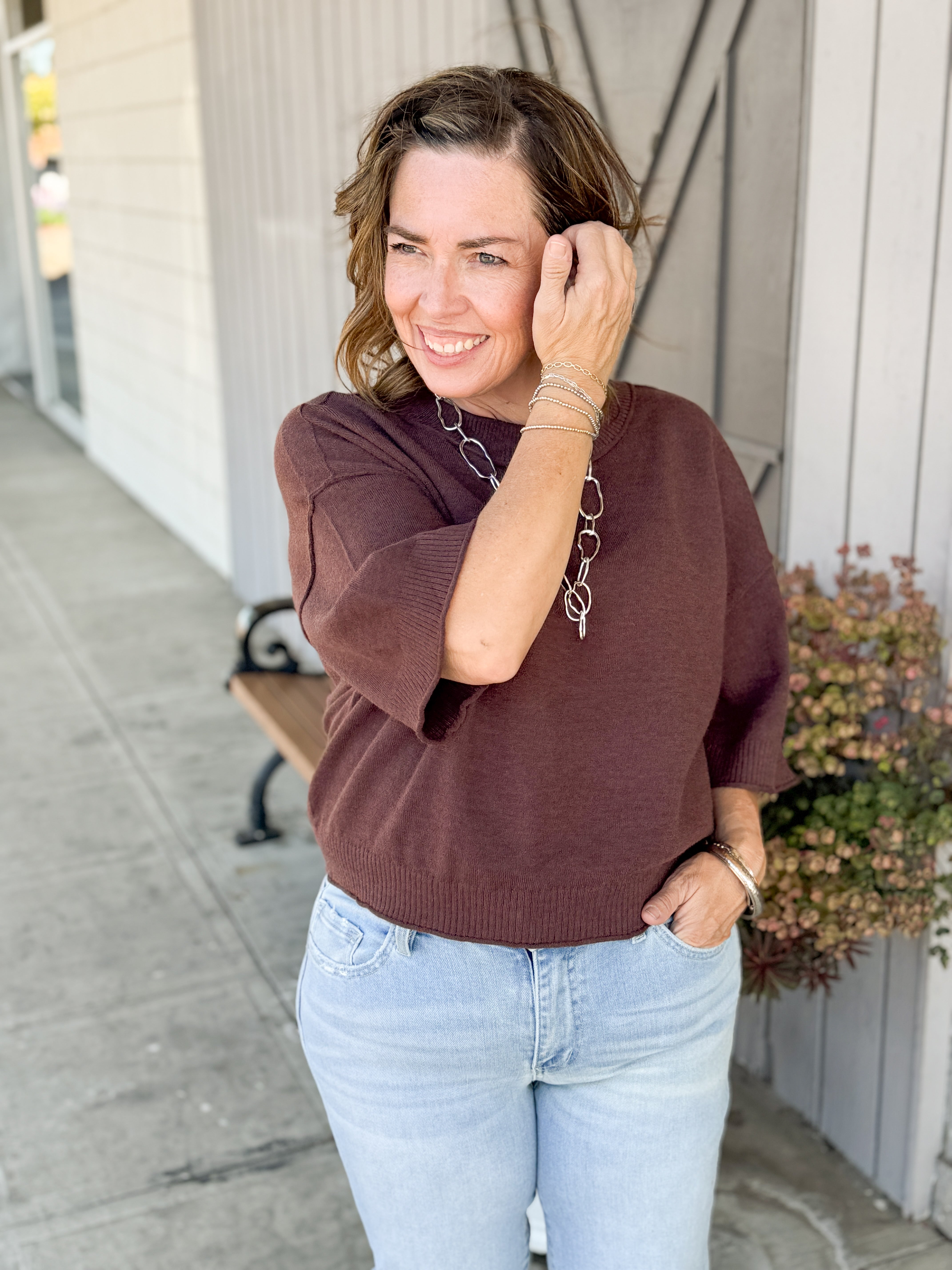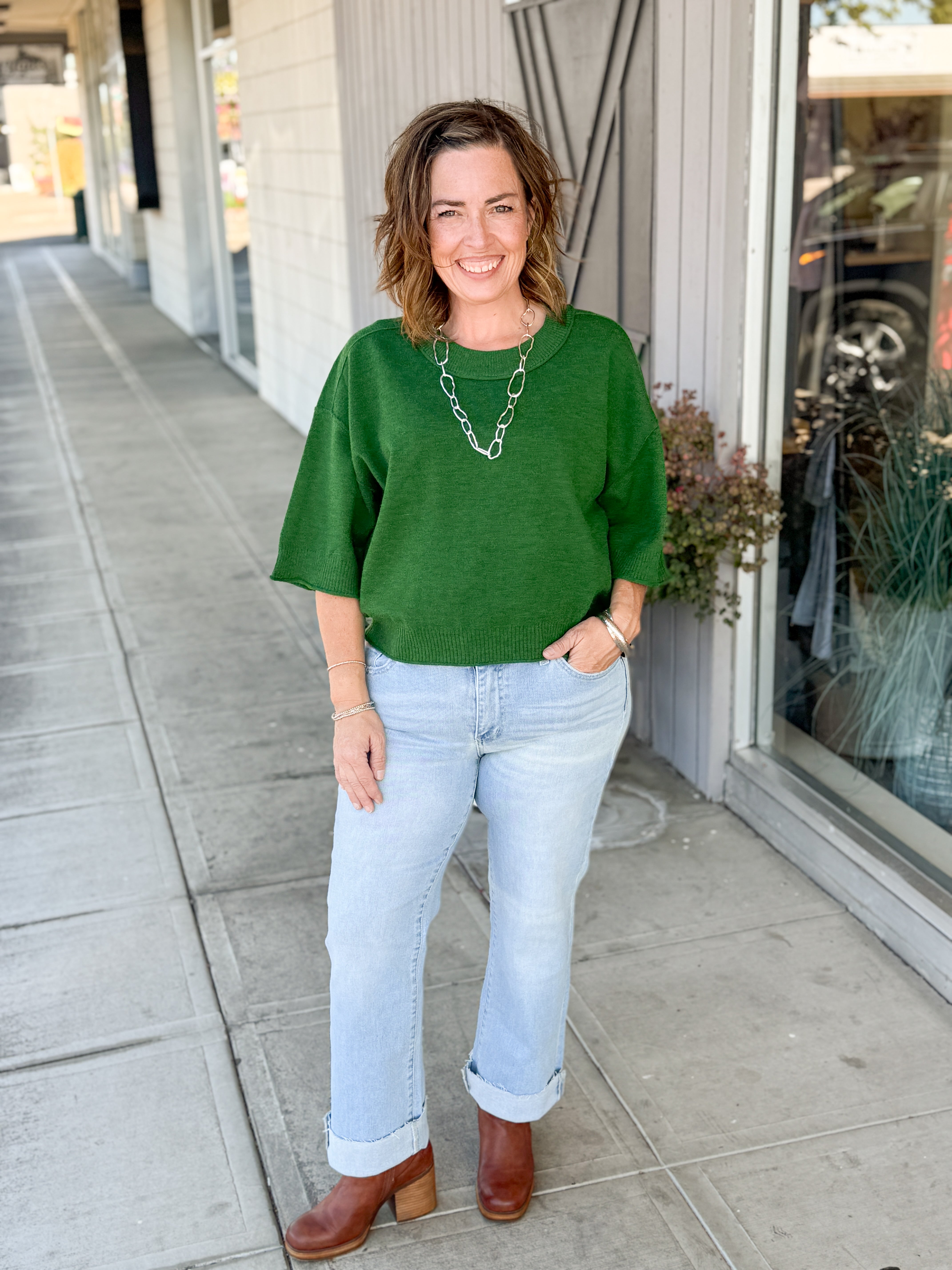 - Cropped short sleeve sweater