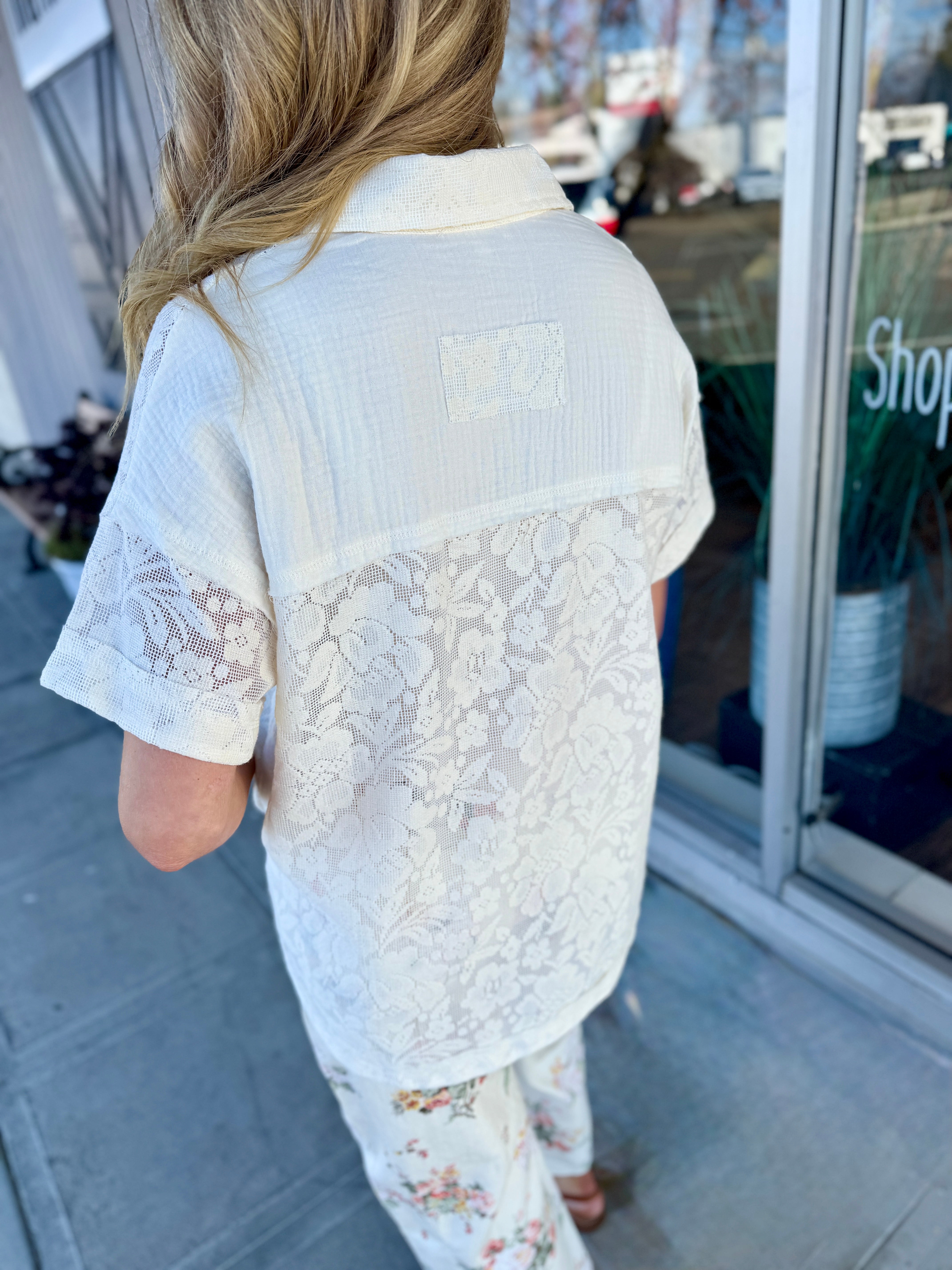 Lace is everywhere this season. This is perfect to dress up or down. Collared, Lace and button details make this a great pick to update your wardrobe.