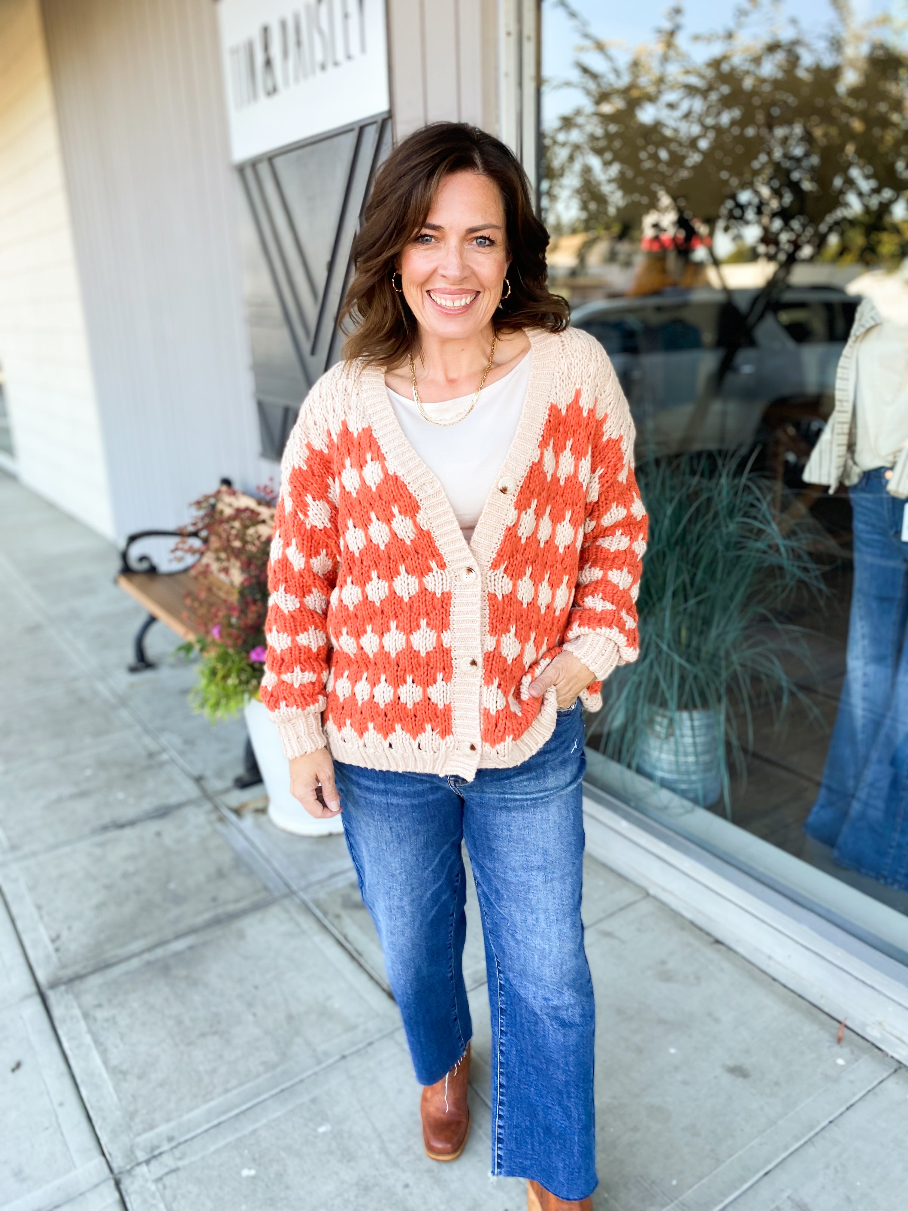 - Textured sweater cardigan